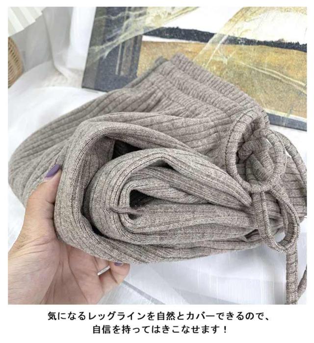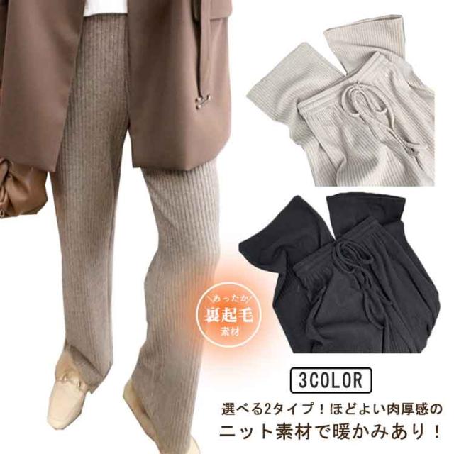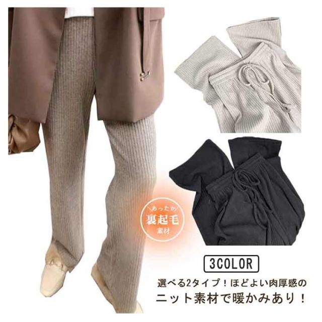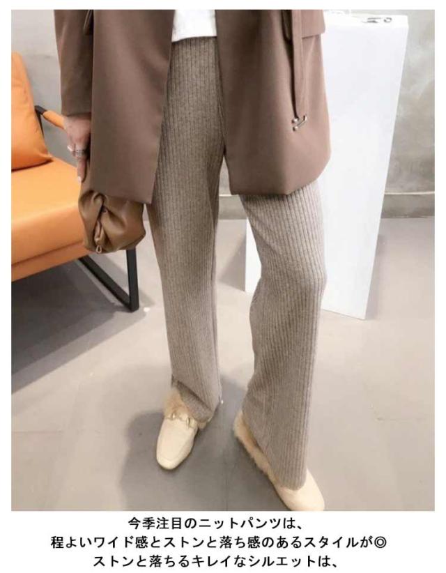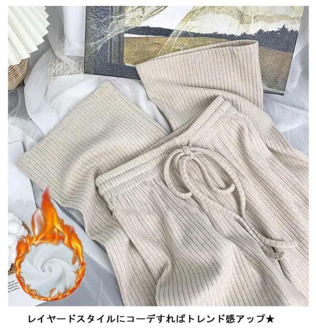 ニットパンツ レディース リブパンツ ニットワイドパンツ ワイドパンツ リラックスパンツ ニット ロングパンツ リブ ボトムス 大人 ガウチョパンツ ウエストゴム ストレートパンツ 裏起毛 秋冬 20代 30代 40代 ママ 母