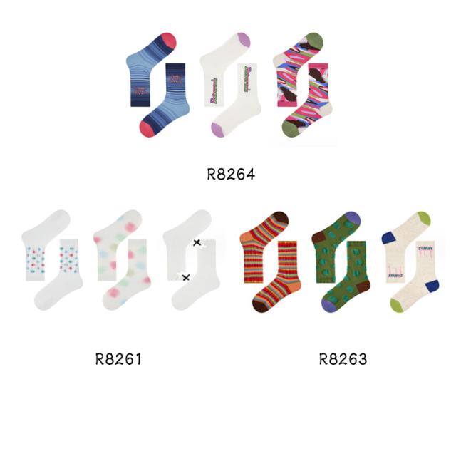 レトロ 靴下 ボーダー柄 水玉柄 ドット柄 北欧 ソックス 秋色 靴下 ミドル丈 スニーカーソックス クルー丈 クルーソックス ヴィンテージ風 靴下 3足セット 靴下 レディース おしゃれ ソックス くつした ポップ ソックス 送料無料