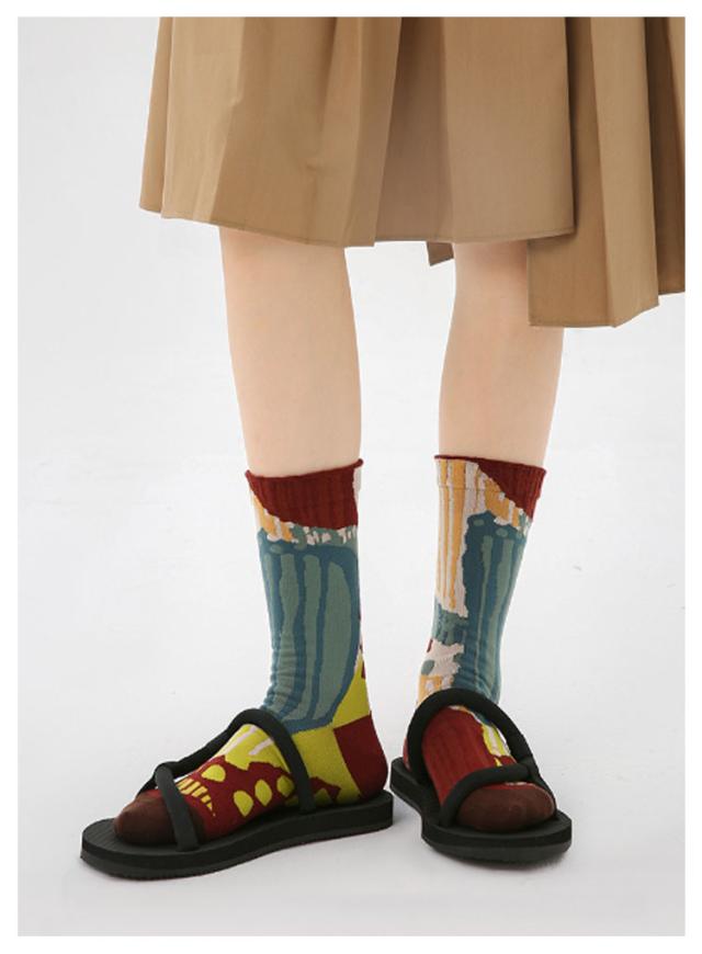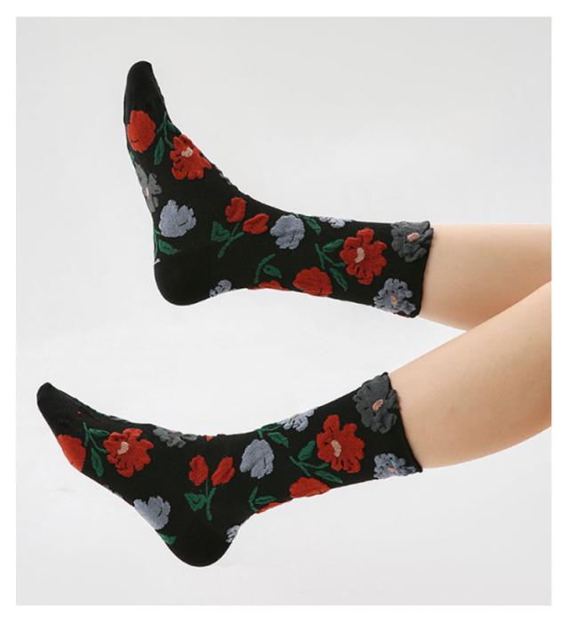 3足セット 靴下 北欧 タイダイ ソックス 秋色 フラワー 花柄 靴下 ミドル丈 チェック柄 靴下 スニーカーソックス クルー丈 クルーソックス レディース おしゃれ ソックス くつした ヴィンテージ風 靴下 送料無料