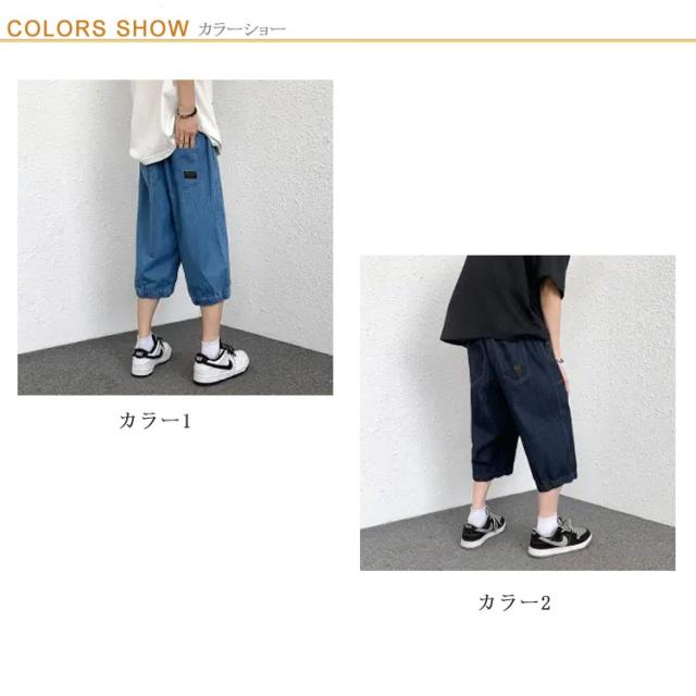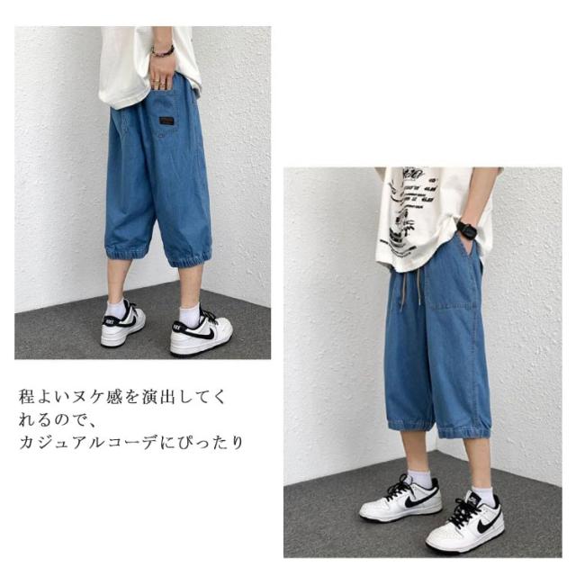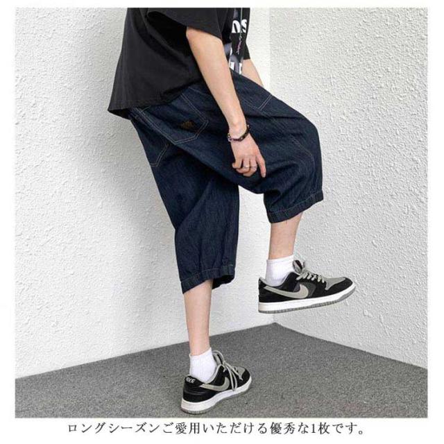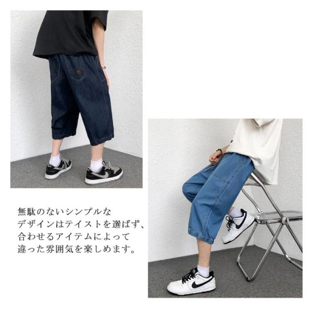クロップドパンツ メンズ デニム カーゴパンツ ひざ下 春夏 イージーパンツ ワイドパンツ ハーフパンツ 膝下丈 カジュアル ルーズ ゆったり 大きいサイズ 体型カバー M L XL 2XL 3XL 4XL 5XL