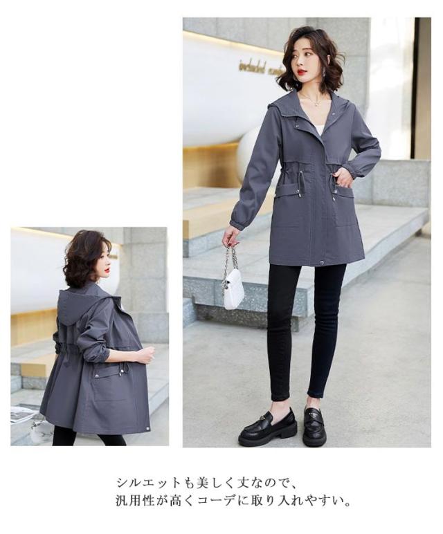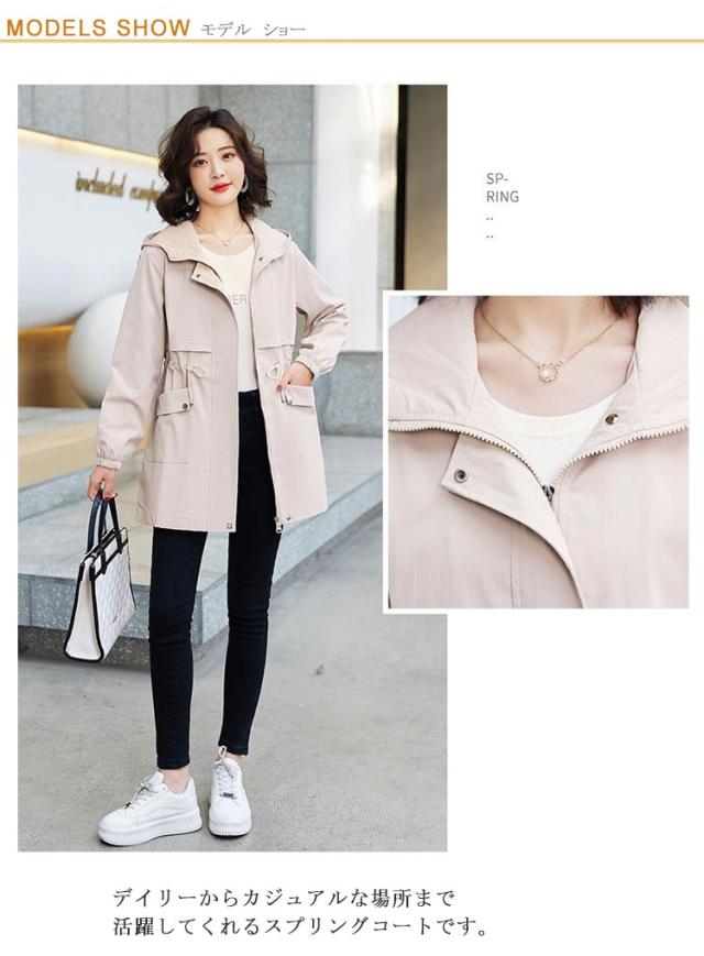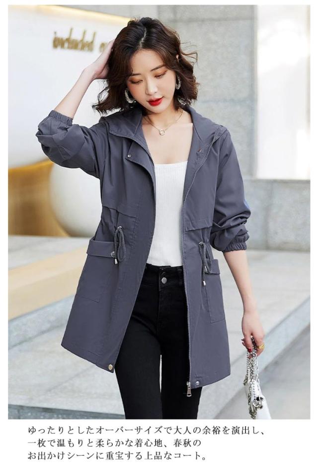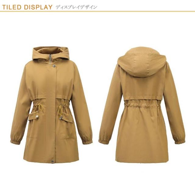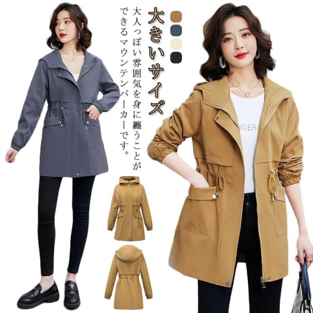ブルゾン レディース マウンテンパーカー 洗える 長袖 アウター ジャケット コート モッズ ドローストリング アウトドア フード付き ライトアウター 防風 春秋 M L XL 2XL 3XL
