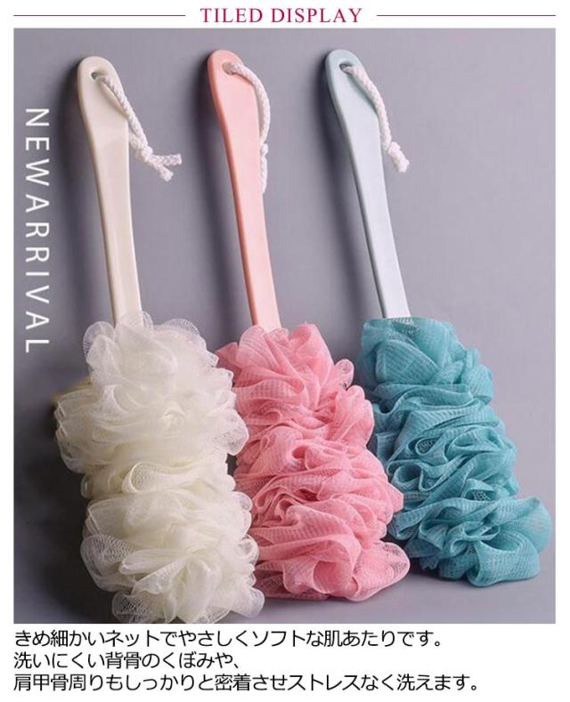 | ふわふわ泡を生成しながらころころと優しく全身を洗浄する新しいボディタオルブラシです。 きめ細かいネットでやさしくソフトな肌あたりです。洗いにくい背骨のくぼみや、肩甲骨周りもしっかりと密着させストレスなく洗えます。 心地よい刺激をもたらし、お肌をやさしく“つるつる”に磨き上げます。余分な皮脂・角質をすっきり落とし、ツルツルスベスベに整えてくれます。 柄の部分には紐が付いているので、フックなどに簡単に掛けておくことが出来ます。可愛いバスグッズでお風呂タイムもきっと楽しくなります。 お風呂上がりご自分の肌の違いにきっと驚くはずです!女性だけではなく男性も多数愛用中! | |