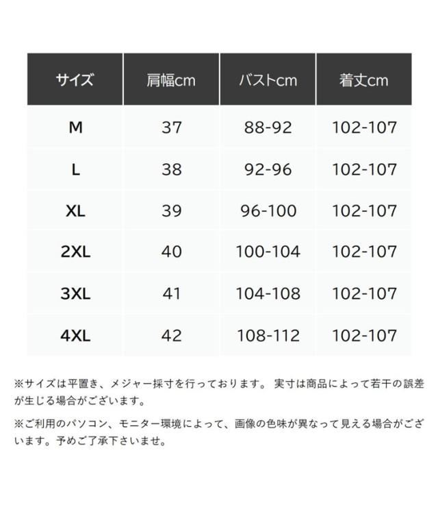 | サイズ | M L XL 2XL 3XL 4XL |