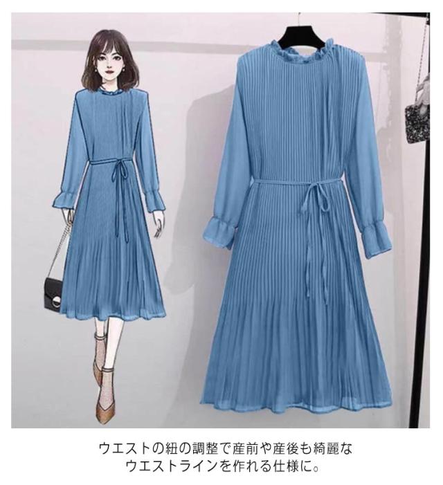 マタニティワンピース プリーツ ワンピース ロング丈 マタニティドレス 大きいサイズ 長袖 Aライン マタニティ服 妊婦 卒業式 産前 産後 大きめ 大人 上品 シフォン 結婚式 お呼ばれ お宮参り