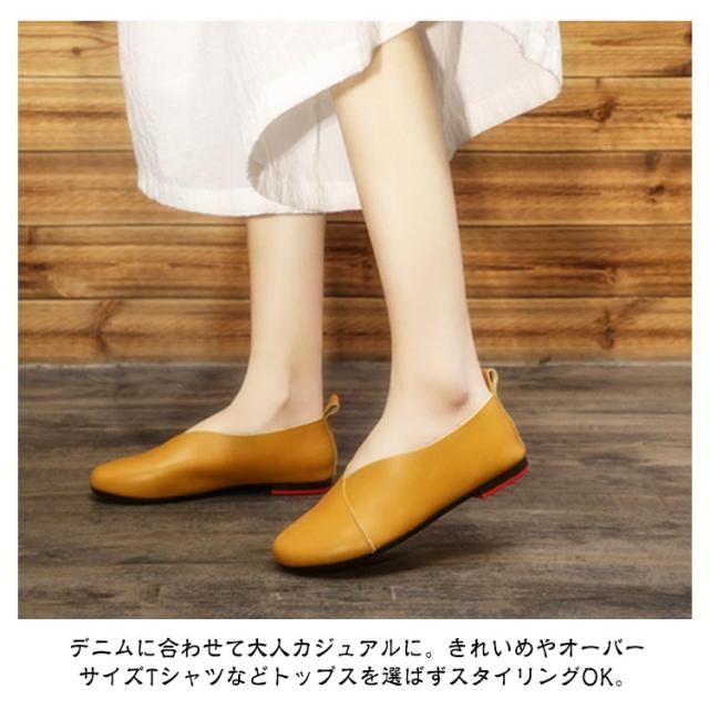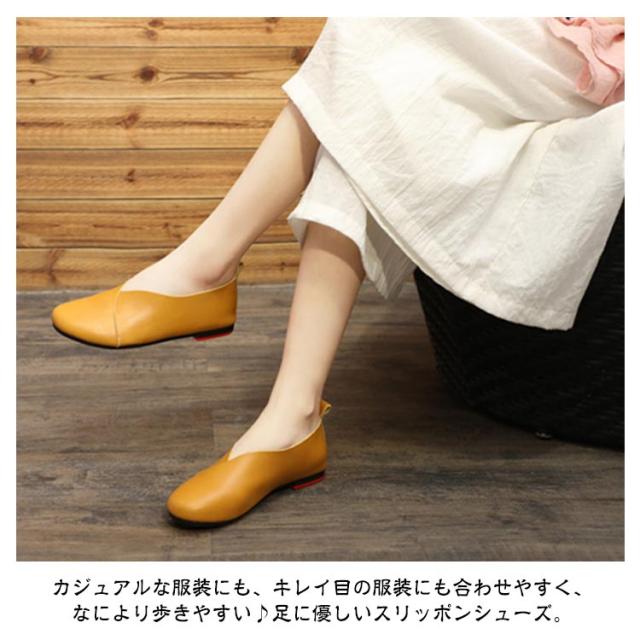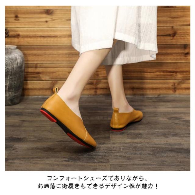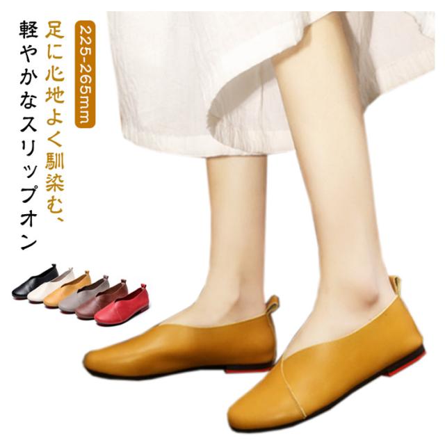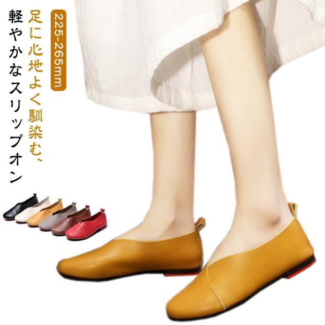 スリッポン レディース フラットシューズ 牛革 革靴 紐なし ローカット ぺたんこ 歩きやすい 痛くない 疲れない 通学 通勤 フラットシューズ 大きいサイズ 無地 シンプル おしゃれ ギフト 母の日 敬老の日 プレゼント 滑り止め 大人女性 送料無料