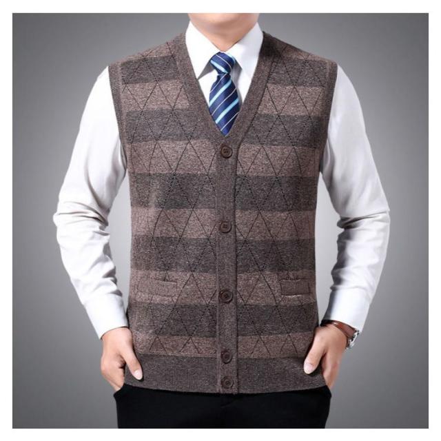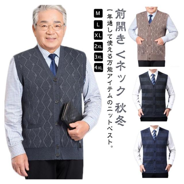 ニットベスト 柄 メンズ ベスト ニット 前開き Vネック シニア お年寄り 高齢者 春 秋 冬 防寒 保温 暖かい ニット トップス ポケット付き 前開きベスト 50代 60代 70代 男性 父 祖父 敬老の日 プレゼント 実用的 大人 カジュアル 【送料無料】