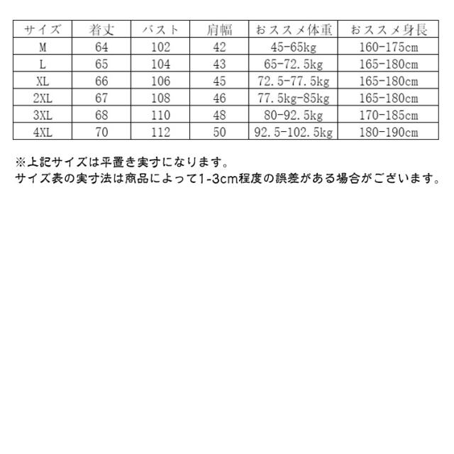 | サイズについての説明 | M L XL 2XL 3XL 4XL |