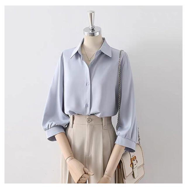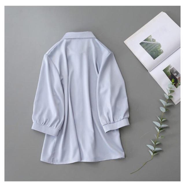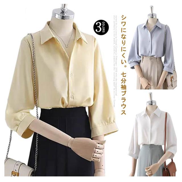 | シワになりにくい。七分袖ブラウス 前開きのデザインもポイントです♪ フォーマルな着こなしは勿論、デニムなどと合わせたカジュアルなコーデにもぴったりな一枚。 通勤、オフィス、入学式に七五三…単品としてもスーツインナーとしても華やかに決める! | |