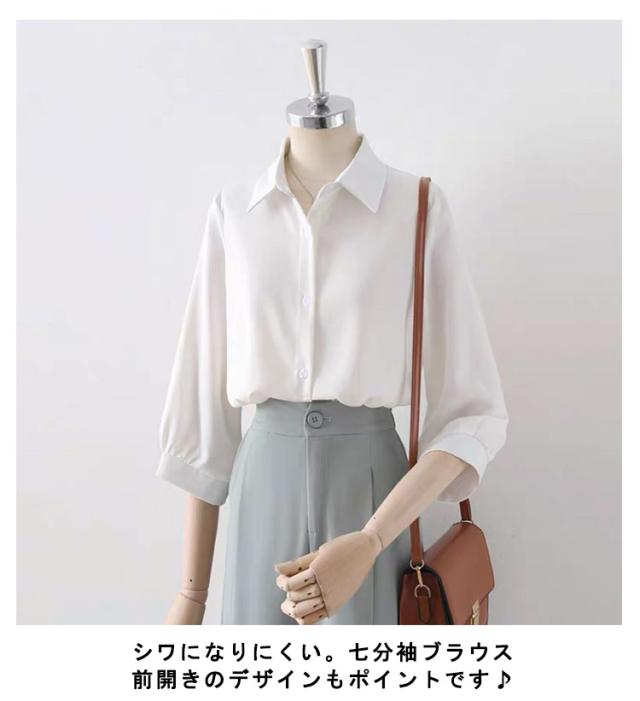 ブラウス 七分袖 レディース トップス シャツ 白ブラウス 白シャツ 7分袖 襟付き 衿 大きいサイズ ゆったり フロントボタン シワになりにくい 通勤 オフィス 事務服 フェミニン カジュアル ブラウス きれいめ 送料無料