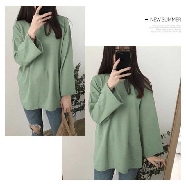 Tシャツ カットソー レディース 長袖tシャツ 長袖 ビッグT 体型カバー オーバーサイズ ビッグシルエット ゆったり 春 秋 部屋着 ルームウェア スウェット 重ね着 レイヤード風 プルオーバー 丸首 無地 シンプル 送料無料