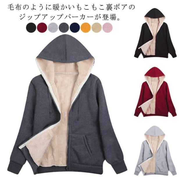パーカー レディース 裏ボアパーカー 暖かい ジップアップパーカー カーディガン 長袖 ジッパー スウェット 部屋着 ルームウェア 秋冬用 寒さ対策 もこもこ 防寒 体型カバー 着回し かわいい おしゃれ 秋服 秋冬
