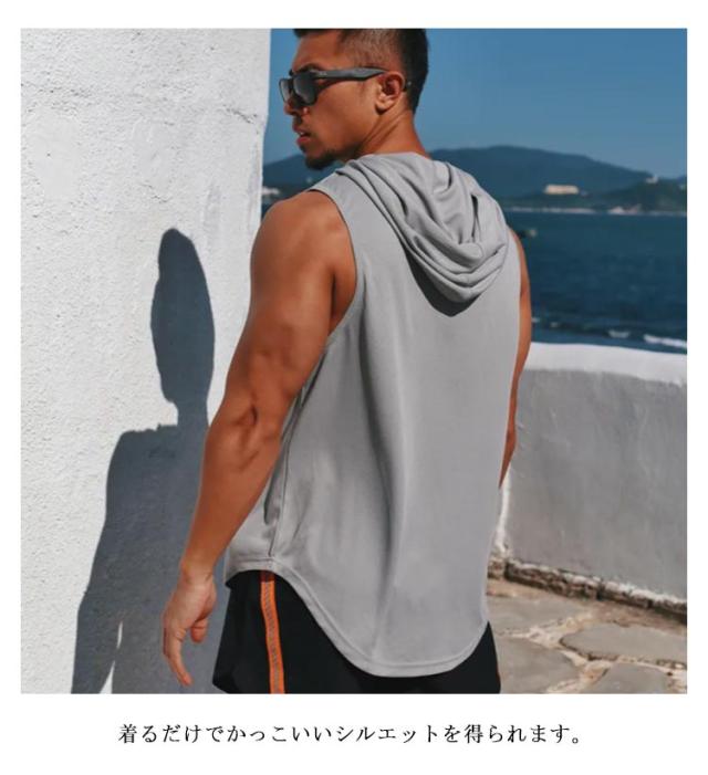 メンズ タンクトップ フード付き メッシュ トレーニングウェア 速乾 スポーツ ノースリーブ トップス トレーニングウェア 筋トレ ジム スポーツウェア 吸汗 運動着 無地 ランニング メンズファッション M L XL 2XL 3XL