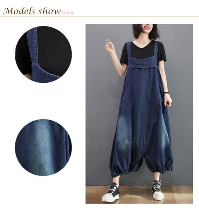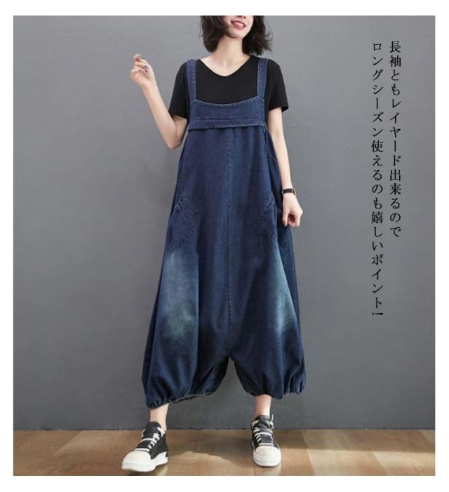 デニムサロペット オーバーオール レディース デニムサロペット ルーズ 春 夏 秋 ポケット付き バルーンパンツ きれいめ カジュアル デニムパンツ 大人 レトロ M L XL 2XL