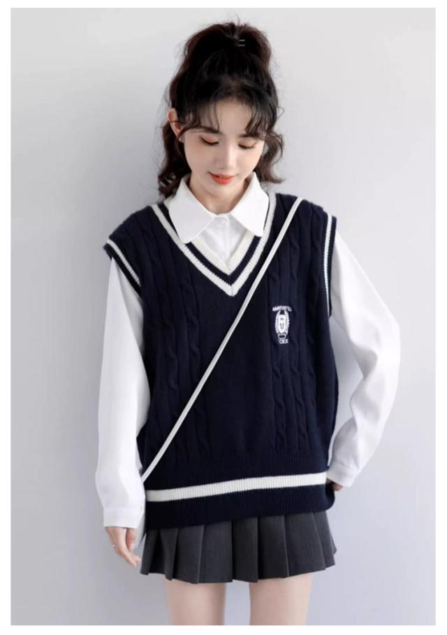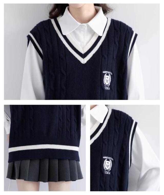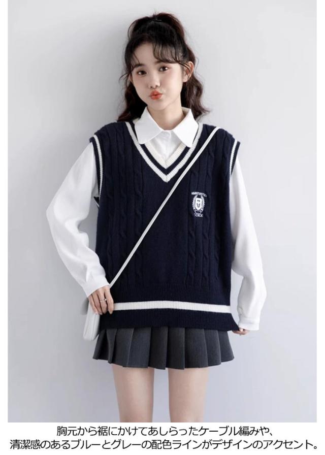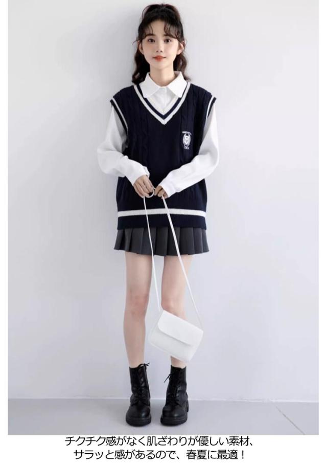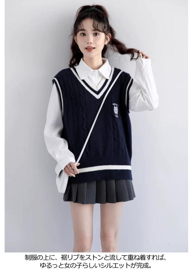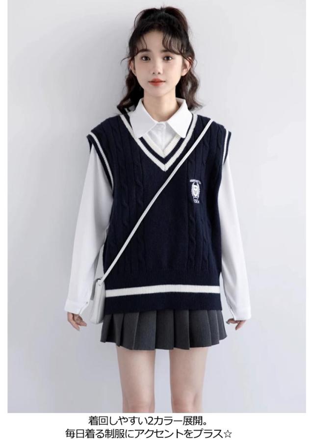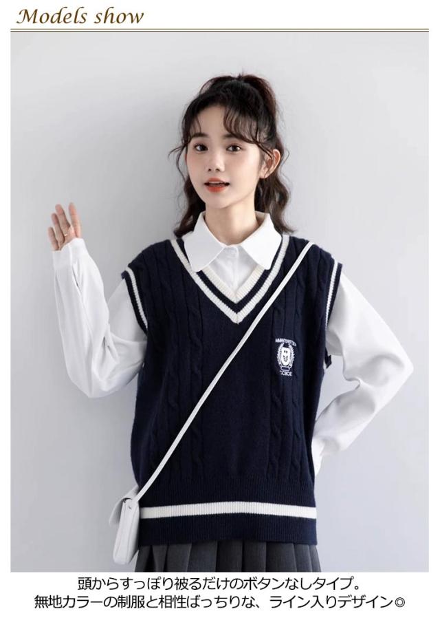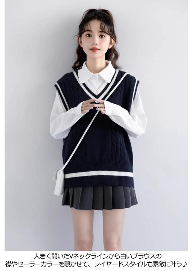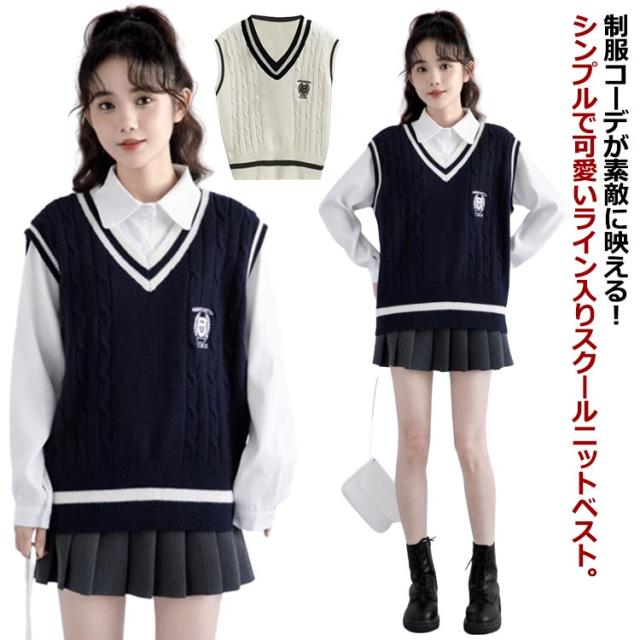 送料無料 ベスト 制服 スクールベスト ライン入り ニットベスト レディース ベスト 女子 高生 Vネック セーター 学生服 リブニット 中学生 高校生 男女兼用 ガールズ ボーイズ 通学 学生 オールシーズン かわいい