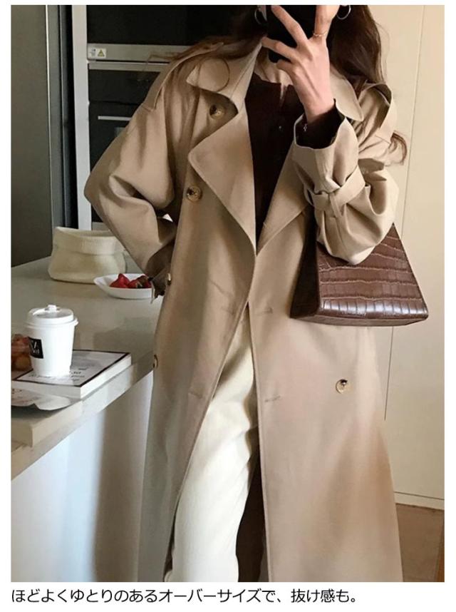 | 程よいボリューム感と丈で1着は持っておきたい人気定番のトレンチコート。 ながら長めの丈や肩まわりのシルエットにこだわり、すっきりと取り入れられるデザインに仕上げました。 程よくゆとりのあるサイズ感で着心地も快適、裏地付きなのでスムーズに着脱できます。 ロング丈&ゆったりとしたシルエットで体型カバー効果も期待できます。 ダブルブレストのデザインに、大きめの襟デザインが、クラシカルな印象に。 普段着でもオフィスコーデでも使える品のあるデザイン、様々なシーンで活躍してロングシーズン大人っぽく着こなせる着回しアイテム! | |
