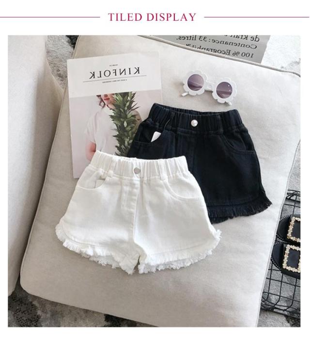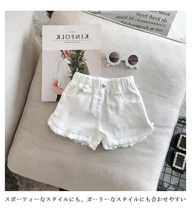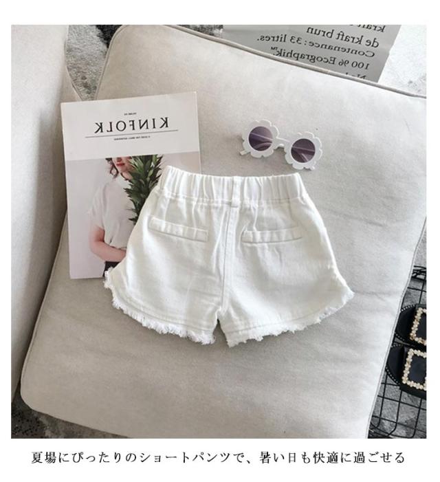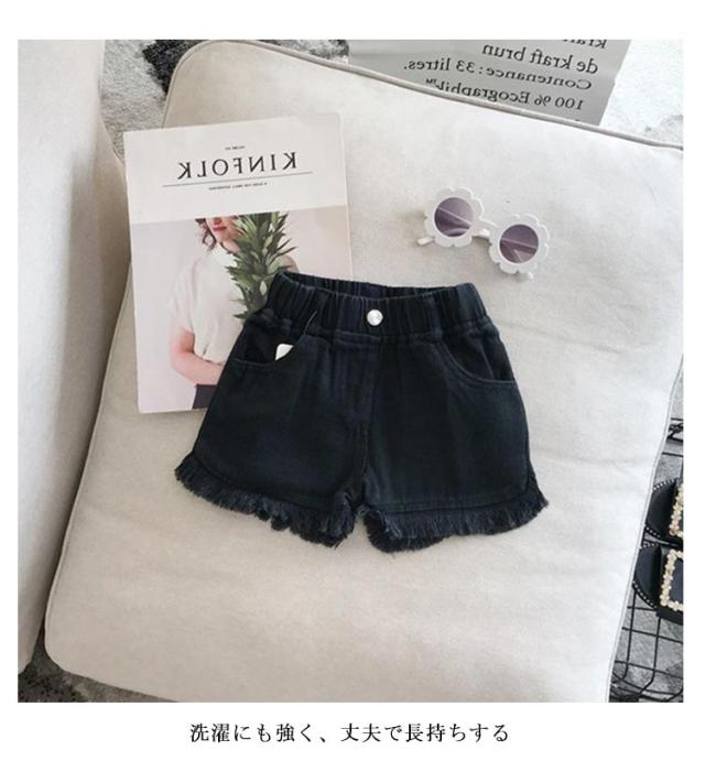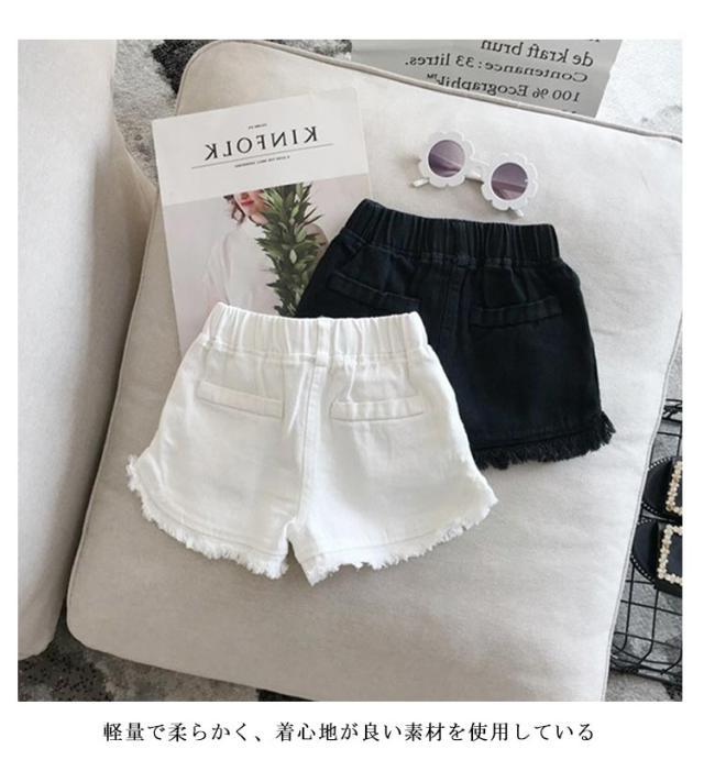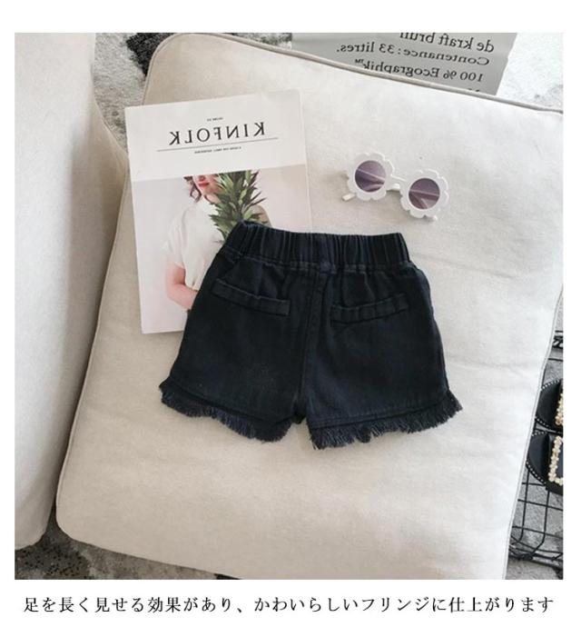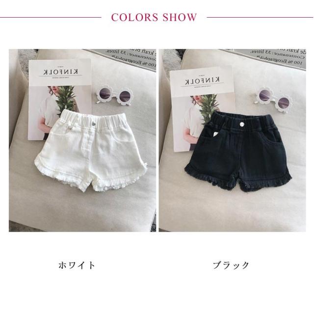 半ズボン ハーフパンツ ショート カラーデニム フリンジ加工 韓国系子供服 キッズ 女の子 春 夏 送料無料 100 110 120 130cm