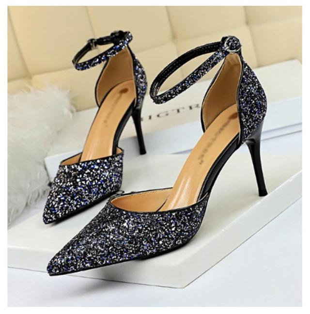結婚式 パンプス 9cm 7.5センチ ピンヒール ハイヒール ストラップ ポインテッドトゥ キラキラ ラメ レディース 黒 シルバー ゴールド ブラック 二次会 パーティー 痛くない 歩きやすい 大きいサイズ 靴 シューズ かわいい