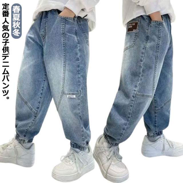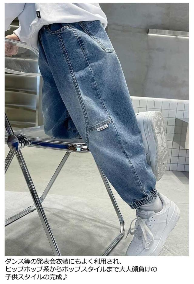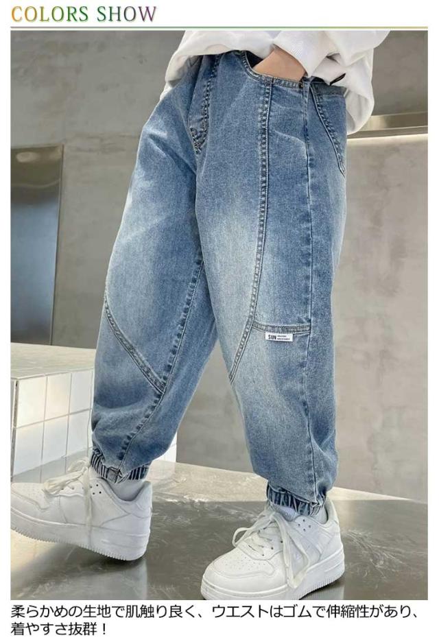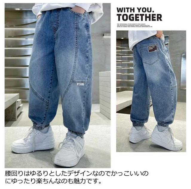 送料無料 デニムパンツ キッズ 男の子 ロングパンツ 長ズボン サルエルパンツ 楽デニム ボトムス ジーンズ 春夏秋冬 ダンスパンツ ゴムウェスト ゆったり 小学校 中学生 練習着