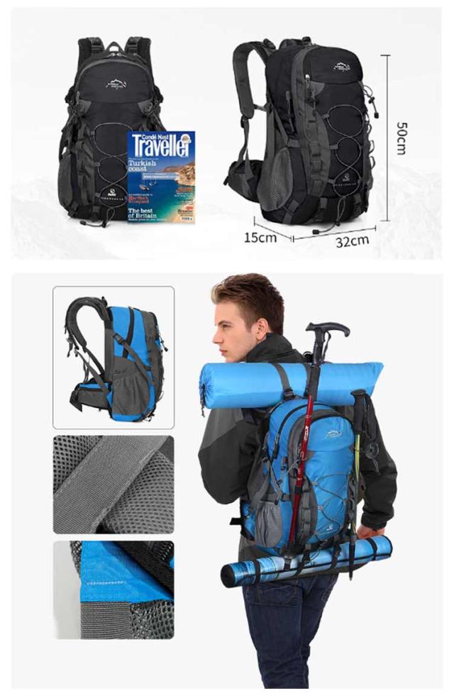| 登山リュック 40L 旅行や日帰り登山、ハイキングに最適なザック。程よい大きさで普段使いにも◎ 容量が勿論、耐荷重性も抜群です。アウトドアを楽しめるリュックサックです。 ポケットも多くバンジーコードやハンギング部分もかなり多くあなたの為のセッティングが可能。テントマットなどの固定できる仕様など必要な仕様! 背中と肩のベルト部分には厚手のクッション材が使われているので、重くても疲れにくいですし、背中に接する部分はメッシュ構造で通気性が良くて、有効的に背中の乾燥を保持し、快適感を感じます。 大人は勿論、キッズにもおすすめです。 | |