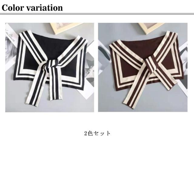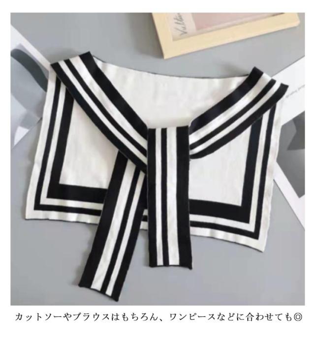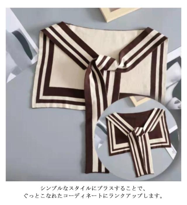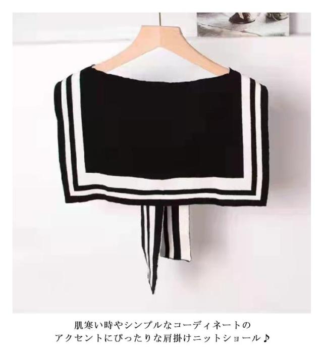 リバーシブル 肩掛け ニットストール フェイクカーディガン 2枚セット ショルダー 付け襟 セーラー襟 ボレロ オフィス冷房対策 つけえり カーディガン風 羽織り 付け襟 セーラー襟 フェイクカーデ 春 秋