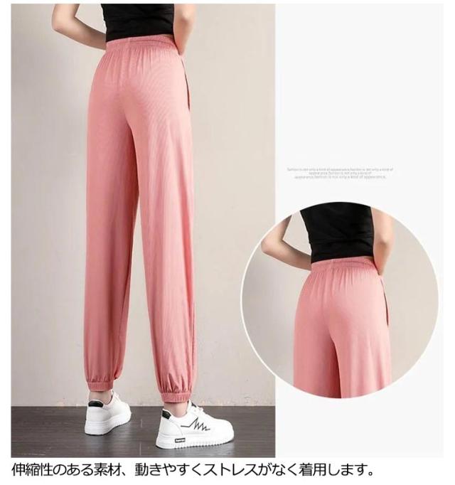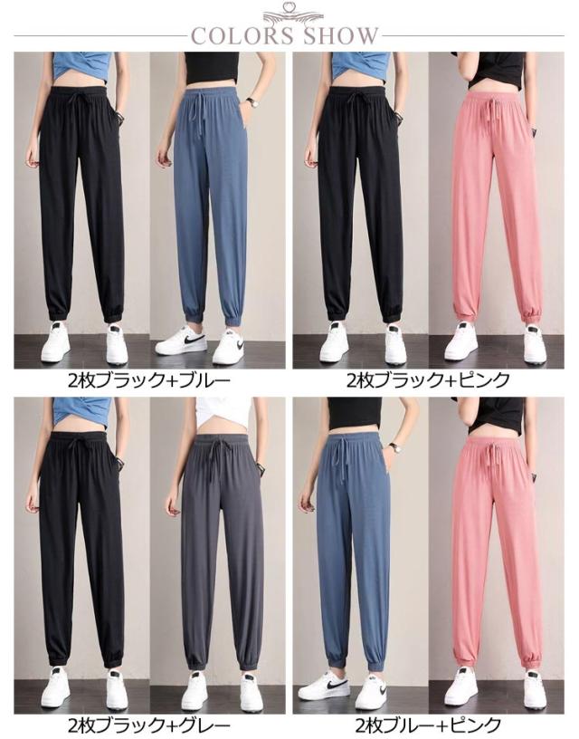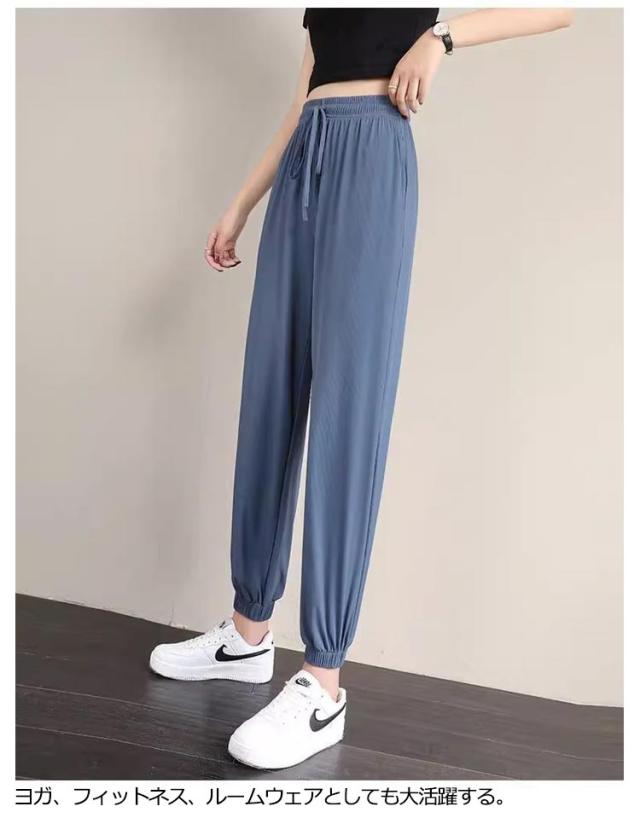 【2本セット】【送料無料】アイスシルク パンツ レディース 接触冷感 パンツ ロングパンツ アイスシルクパンツ 冷感パンツ ひんやり スウェットパンツ 涼しい ポケット付き ウエストゴム 速乾 サラサラ 窮屈感ゼロ