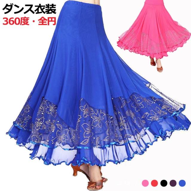 超ストレッチ ダンス スカート ダンス衣装 社交ダンス サーキュラースカート ダンス衣装 ロングスカート フレアスカート ロング フラメンコ衣装 ラテンダンス ヒップホップ ベリーダンス フリル レディース ミカドレス 送料無料