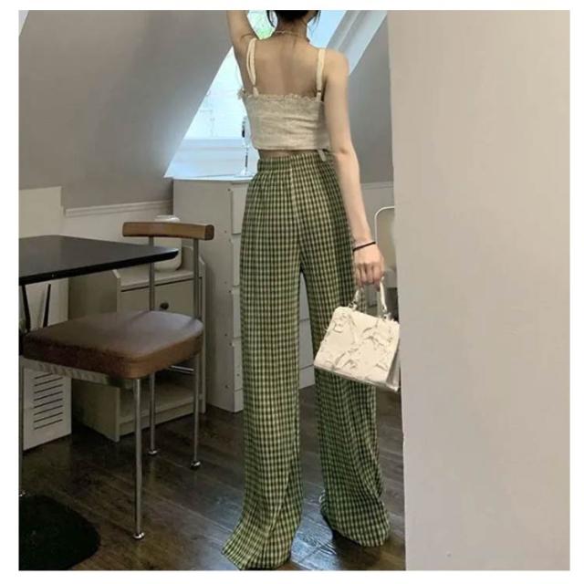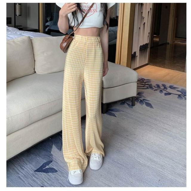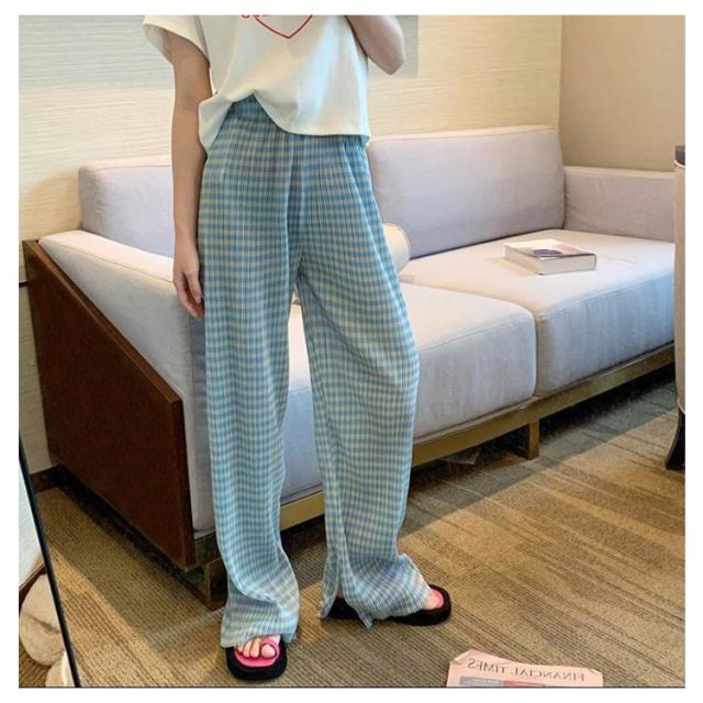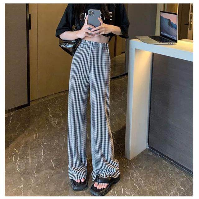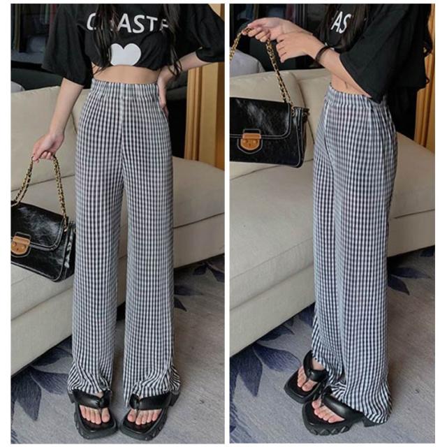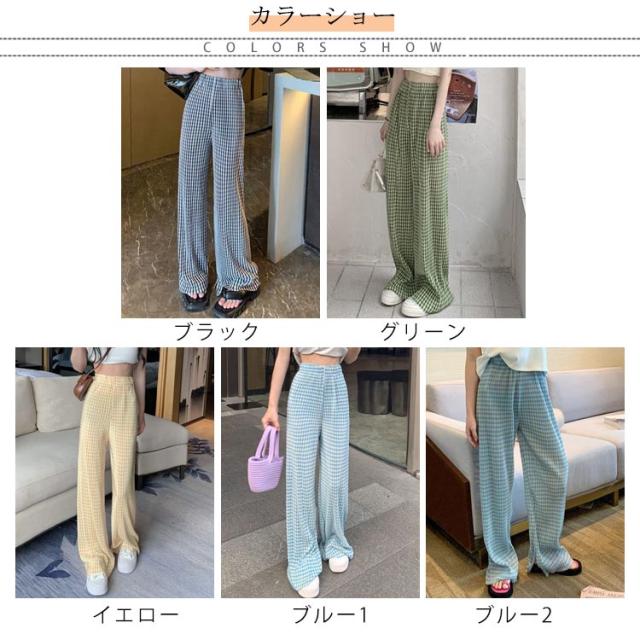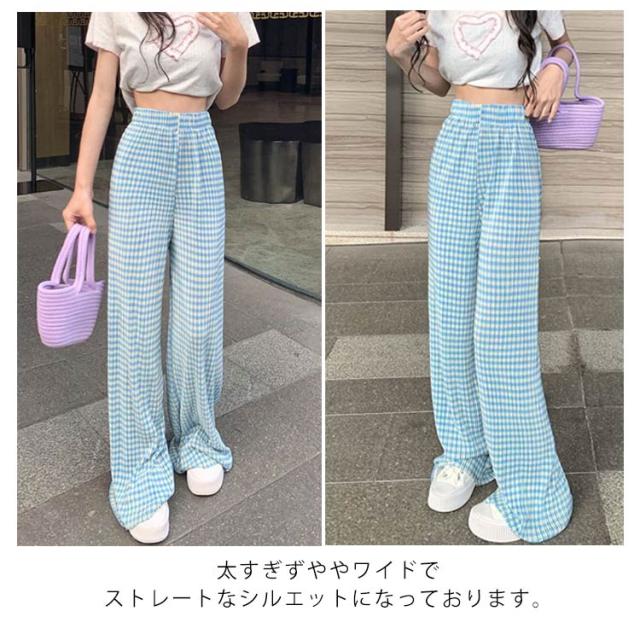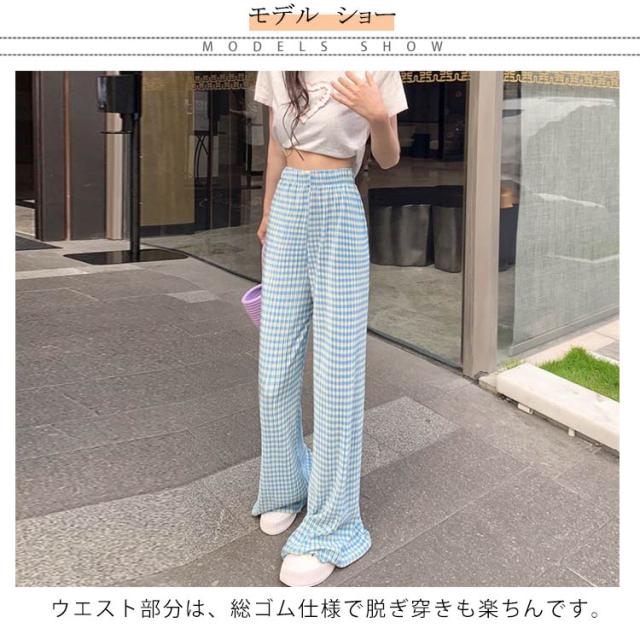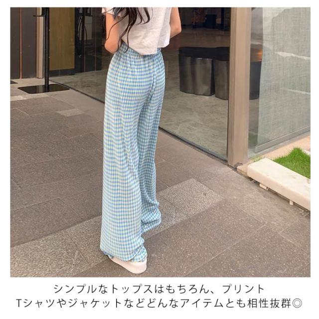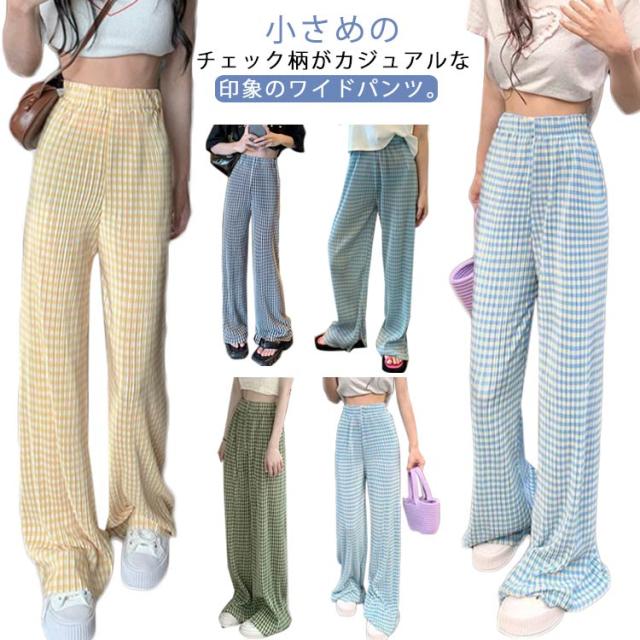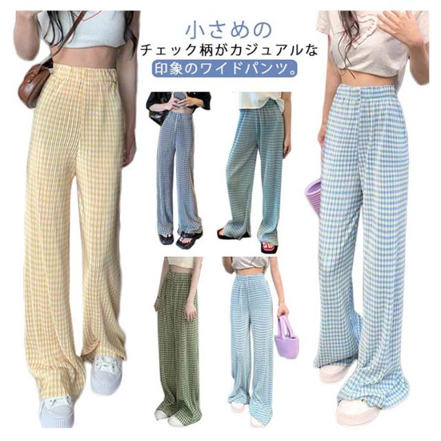 ワイドパンツ レディース 春 夏 秋 イージーパンツ チェック柄 カジュアル ボトムス 楽ちん ズボン ウエストゴム ロングパンツ シンプル 大人カジュアル 春夏秋冬