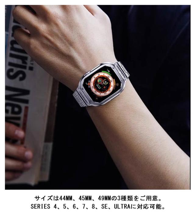 アップルウォッチ カバー バンド 高級 メンズ ステンレス 44mm 45mm 49mmシリーズ 8 7 6 5 4 SE Ultra apple watch 交換 腕時計 おしゃれ applewatch