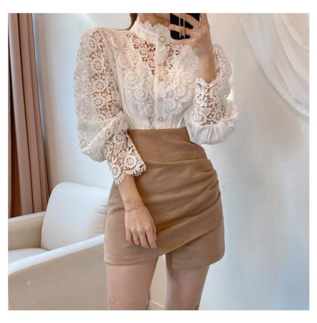 レース ブラウス トップス レディース 花柄 花レース 刺繍 立ち襟 総レース バルーンスリーブ ランタンスリーブ シースルー シャツ ブラウス 総レース 春夏 レディースファッション 大人可愛い 送料無料