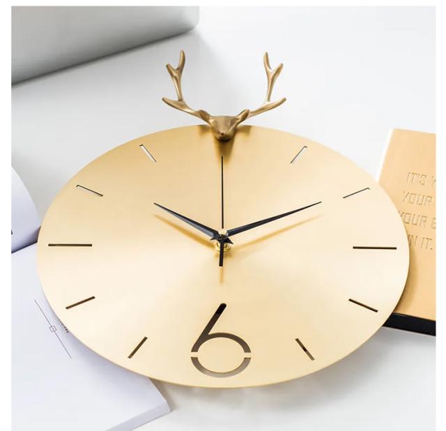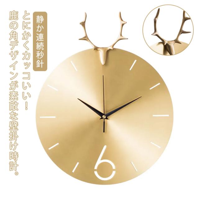 壁掛け時計 掛け時計 ゴールド 時計 ファッション おしゃれ アートクロック 高級 アルミ製 ゴールド 金色 鹿 角 金属 メタル 静か連続秒針 壁掛け 掛け時計 大きい 友達 新築祝い 掛け時計 結婚祝い 存在感 お店 開店祝い プレゼント デザイン時計