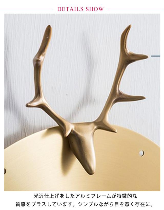 | とにかくカッコいい!鹿の角デザインが素敵な壁掛け時計。 壁に映るシルエットが独特の立体感を生み出しオブジェのような存在感があります。 光沢仕上げをしたアルミフレームが特徴的な質感をプラスしています。シンプルながら目を惹く存在に。 お部屋の雰囲気に合わせて選べます。和室やアンティークな空間にもよく馴染む仕上がりです。 大きい時計ですので自宅でも店舗でも存在感をだしてインテリアに溶け込んでくれます。 | |