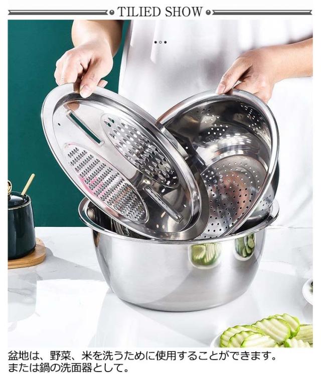| おろし金は完璧なキッチンツールです。 盆地は、野菜、米を洗うために使用することができます。または鍋の洗面器として。 ジャガイモ、キュウリ、ニンジン、その他の野菜や果物をすりおろしたり洗浄したりするのに適しています。 洗面器は簡単に取り外し可能で、使用後は水で簡単にすすぎ、保管に便利です。 | |