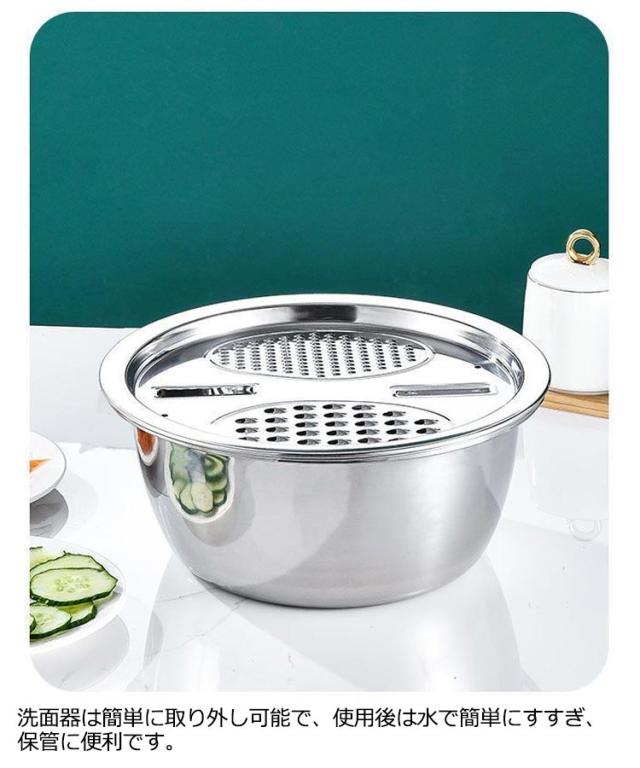 千切りスライサー スライサー セット スライサー 千切り 安全ホルダー 野菜カッター 薄切り おろし器 大根おろし キャベツ きゅうり 人参 じゃがいも 山芋 ニンニク ピーマン ネギ 厚さ調節 受け皿 野菜スライサー ステンレス