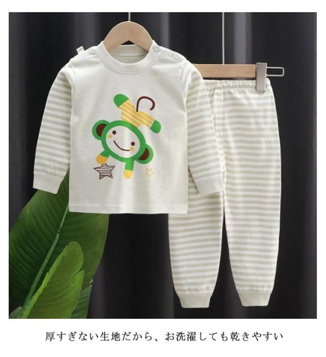 | 伸縮性があって着やすく動きやすい/かわいい柄のキッズルームウェア。 おやすみタイムだっておしゃれしたい?可愛らしいカラー、デザイン子供もきっと気に入る 厚すぎない生地だから、お洗濯しても乾きやすい おやすみなさいが苦手なお子様も眠るのが楽しくなっちゃいます ちょうどいい生地感で、オールシーズンご使用できます | |
