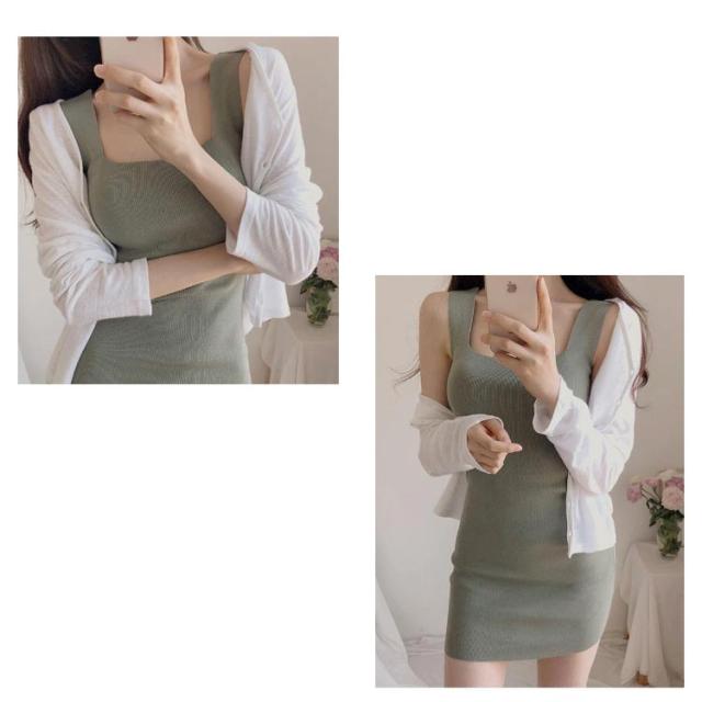 レディース ミニワンピース ニットワンピース ワンピース ノースリーブ カットソー スクエアネック タイトワンピース キャミ ミニ丈 大きいサイズ ニット 春 夏 秋 大人 セクシー 無地