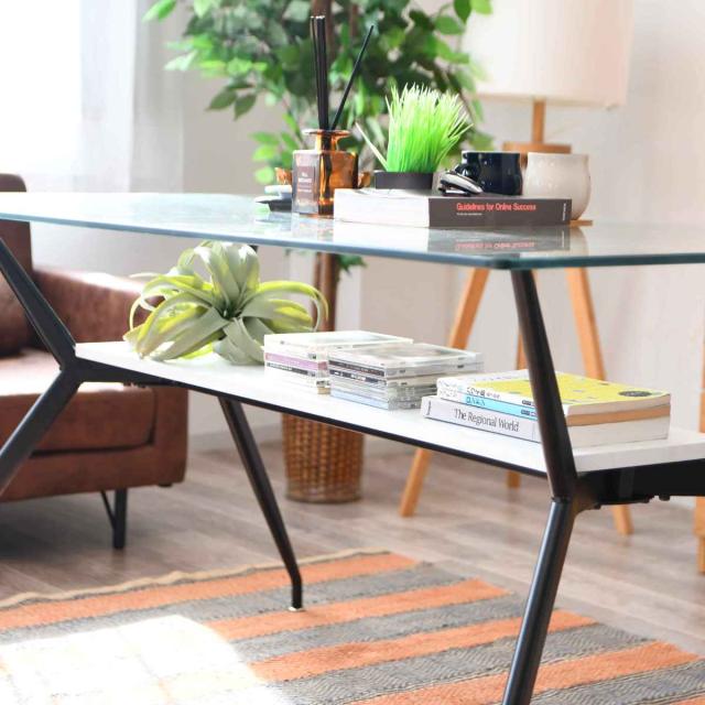 ガラス天板をしっかり支えるために考えぬかれたブラックスチール。安定性を追求しつつ、おしゃれな印象を与えてくれます。