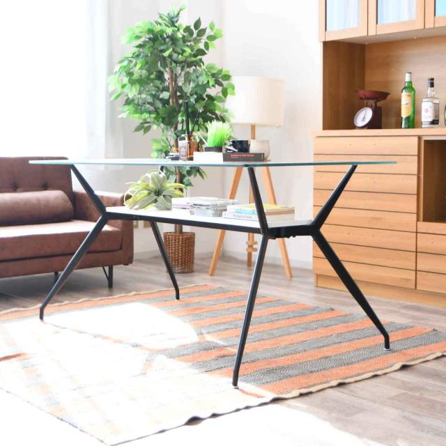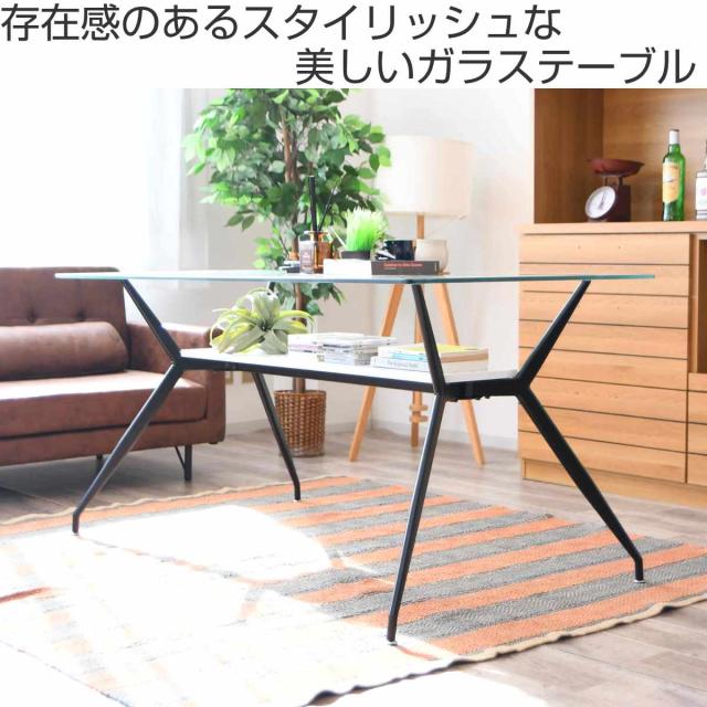 《 LH13662 透明 クリア 食卓テーブル シンプル 強化ガラス 天板下 棚 カフェ風 お洒落 オシャレ 新生活 新居 引っ越し ワンルーム 1人暮らし ひとり暮らし 一人暮らし インテリア 家具 》
