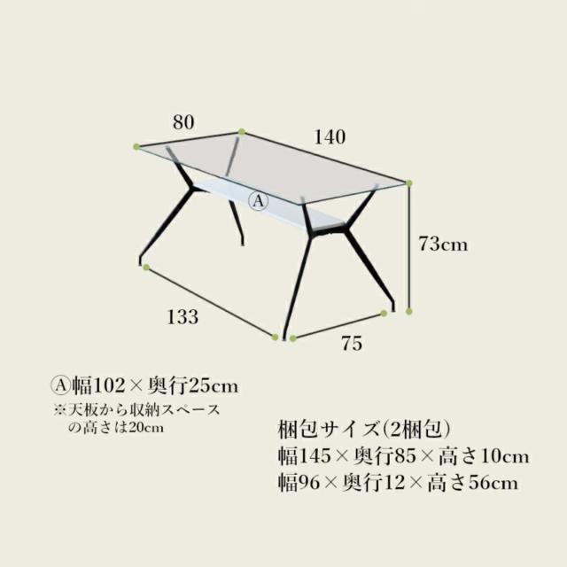 ダイニングテーブル 4人掛け ガラス 収納スペース付き 幅140cm ( ガラステーブル テーブル ダイニング 4人用 長方形 四角 スチール 脚 おしゃれ スタイリッシュ モダン )
