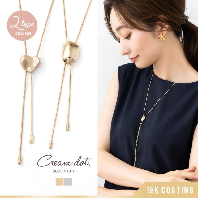 ぷっくりとしたハート/ニュアンスモチーフから選べるループタイネックレス。艶ありとヴィンテージの2タイプをご用意しました。スライド式でお好みのバランスに調節できるから幅広いコーデに合わせられそう◎