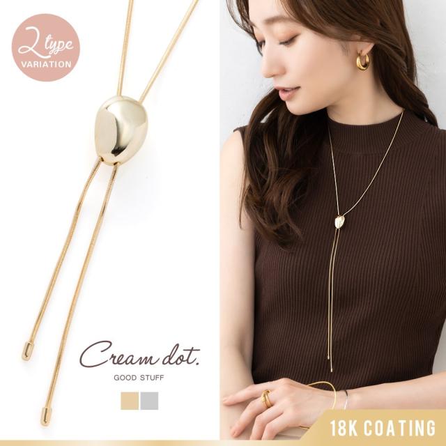 ぷっくりとしたシルエットのニュアンスドロップモチーフが存在感抜群なスネークチェーンのループタイネックレス。艶ありとヴィンテージの2タイプをご用意しました。スライド式アジャスターで、お好みのバランスに調節できます◎