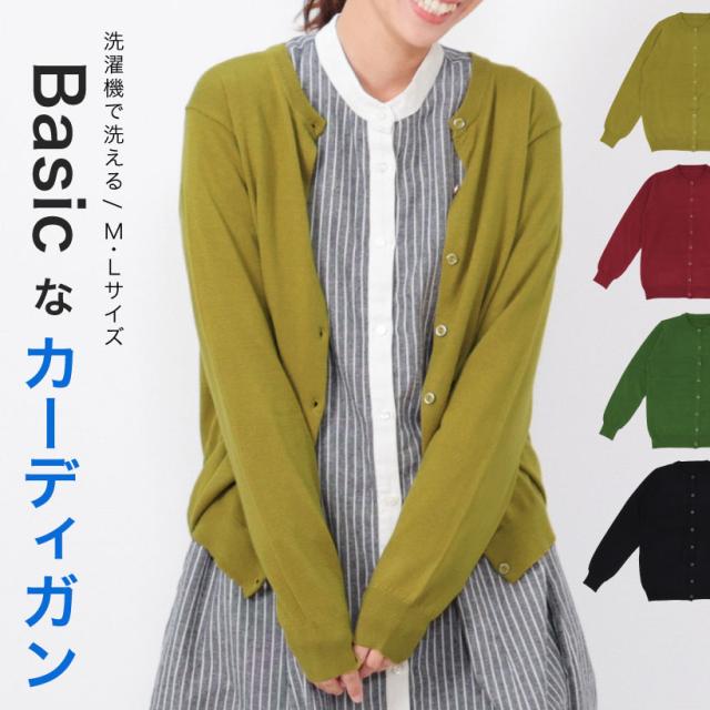 【メール便1点のみ送料無料】洗濯機で洗える!もちもちニットカーディガン レディース【M/Lサイズ】Uネック おしゃれ かわいい シンプル 無地【N】【M】