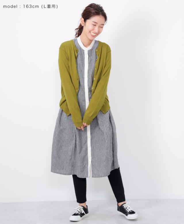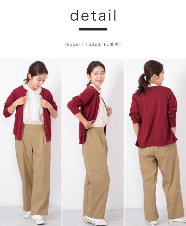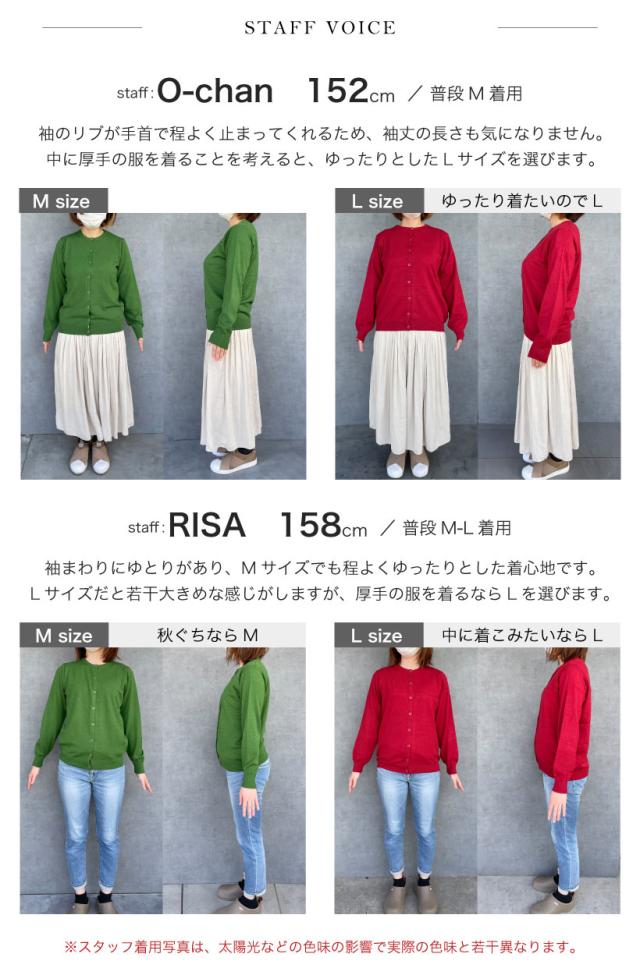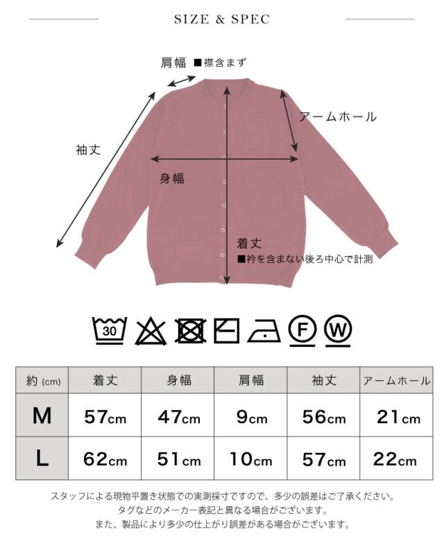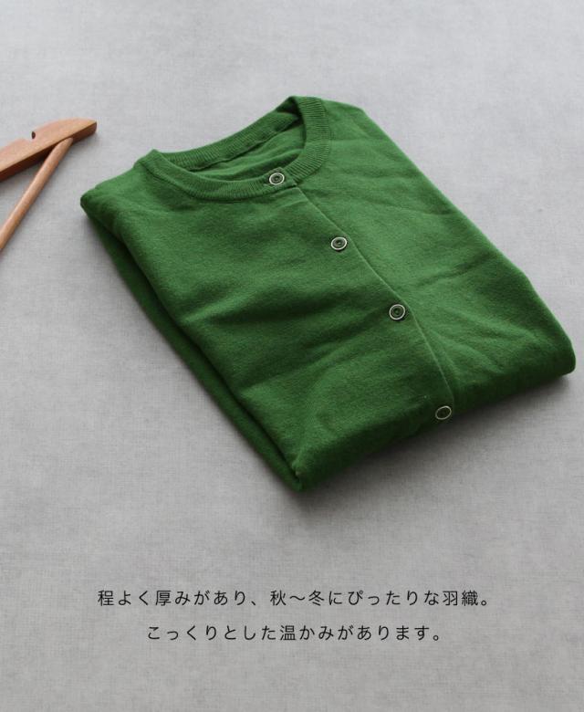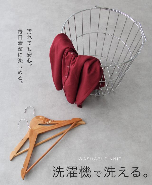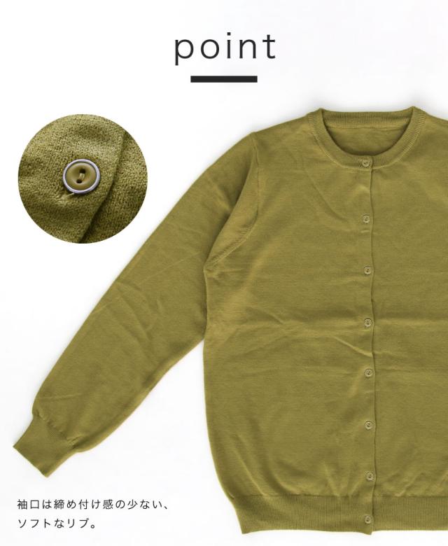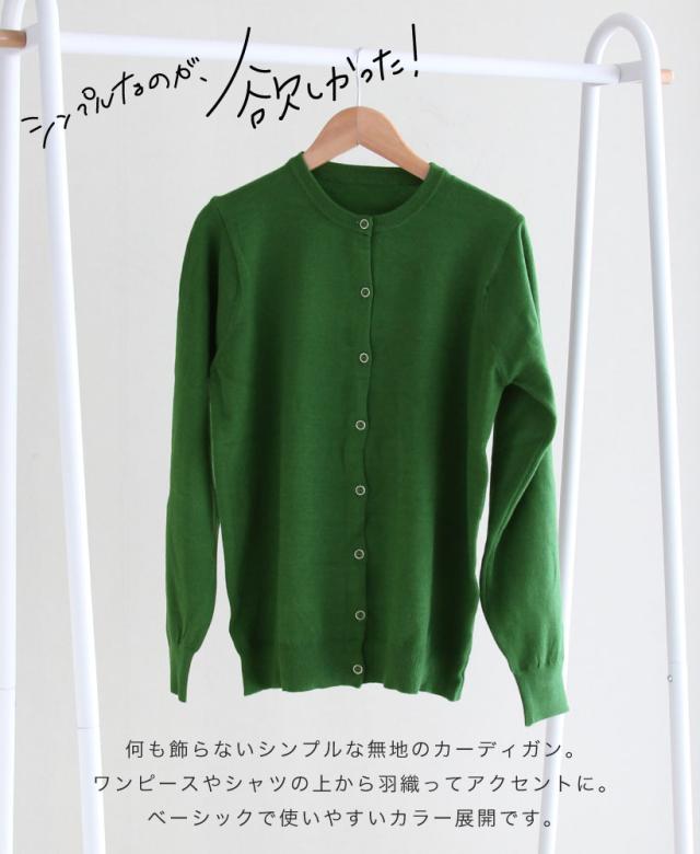 ありそうで、なかなかないベーシックな無地のカーディガン。程よく厚みがあり、ちくちくせずもっちりと滑らかな肌触り。中に長袖を着られるよう、腕回りに余裕を持たせ、秋冬に大活躍すること間違いなし。洗濯機で洗えるので、お手入れもラクチン。