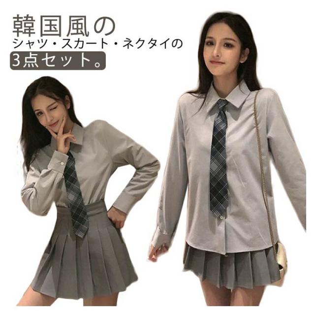 韓国制服 学生制服 3点セット 長袖 スカート ネクタイ 女子高生 中学生 高校生 学生服 JK スクール制服 上下セット 学校 通学 女子 入学 ハロウィン コスプレ 仮装 コスチューム 文化祭 学園祭 イベント 春 夏 秋 冬 送料無料