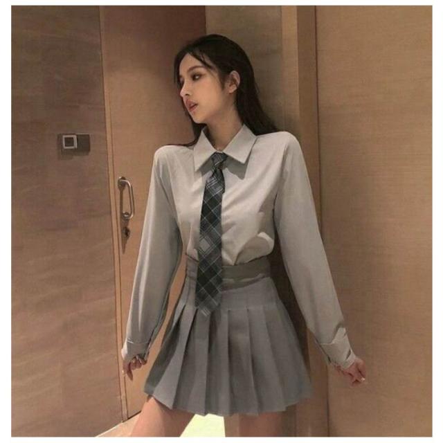 | 韓国風のシャツ・スカート・ネクタイの3点セット。 中学生・高校生の学生制服やコスプレなどのなんちゃって制服にもおすすめです。 洗濯機OKで汚れたらすぐに洗える | |