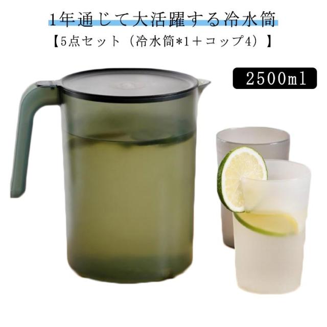 冷水筒 2.5リットル ピッチャー 水差し 水さし 麦茶ポット 冷水ポット 3点セット(冷水筒*1+コップ2) 大容量 麦茶 水 シンプル おしゃれ 広口 洗いやすい 家庭用 業務用 会社 持ちやすい プラスチック クリア 軽い 水出し ギフト プレゼント 送料無料