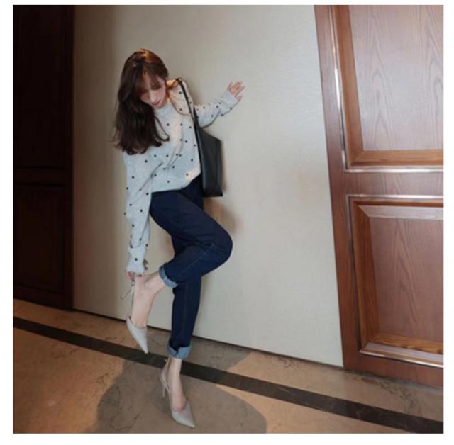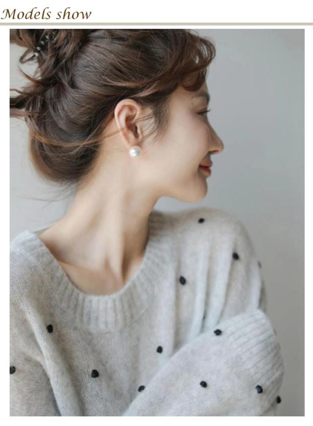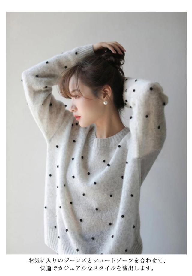 トップス レデイース 秋冬 長袖 ドット柄ニット 丸首 セーター ゆったり 水玉 ロングスリーブ ゆったり 韓国服 女性 無地 ウール混紡 大人可愛い 大人カジュアル ビッグシルエット ママ 韓国 大きサイズ