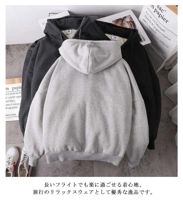 | もこもこあったか裏ボアパーカー で様々なコーデに合わせやすい万能トップス。 全面ボアで高い保温性を実現し、ほかほか暖かく冬の寒さを感じさせません。 起毛はふんわりとした肌触りで、毎日着たくなるほどのぬくぬく快適な着心地です。 長いフライトでも楽に過ごせる着心地、 旅行のリラックスウェアとして優秀な逸品です。 パジャマ代わりのルームウェアや部屋着だけでなく、 ワンマイルウェア、スポーツウェアやアウトドアなどでも活躍してくれます。 | |