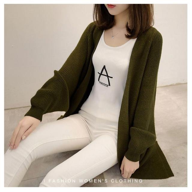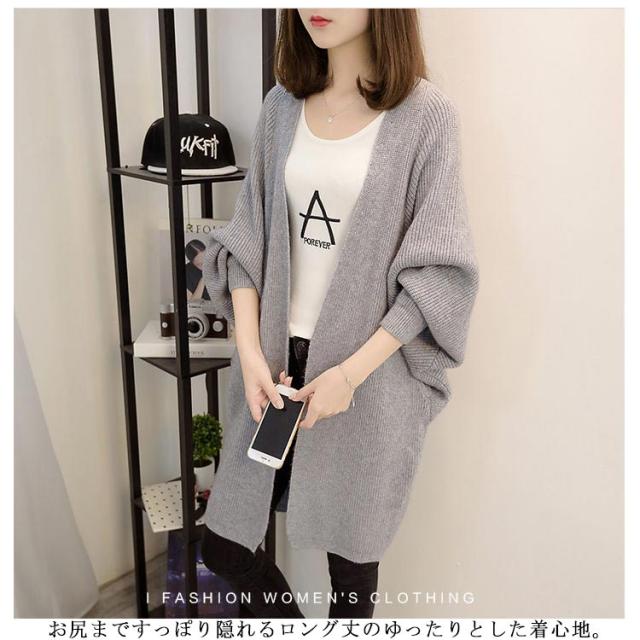 ロングカーディガン 袖 ボリューム レディース シンプル ニット カーディガン トッパーカーディガン ロングカーデ 大人可愛い トップス ロング 春秋 体型カバー ゆったり 羽織 アウター ゆるニット ドルマンスリーブ きれいめ 通勤 通学 フリーサイズ 送料無料