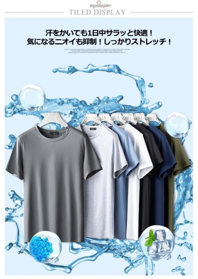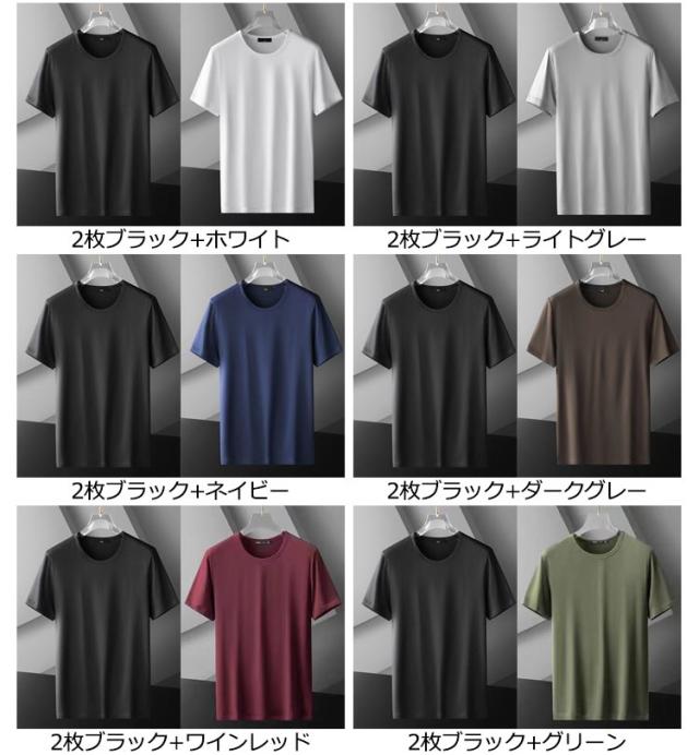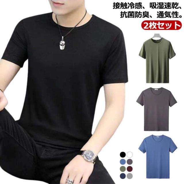2枚セット!tシャツ メンズ 半袖 夏 夏用 接触冷感 半袖tシャツ アイスシルク 吸汗速乾 涼しい ひんやり 無地 スポーツ さらさら ランニングウェア トレニンーグ 大人 黒 ブルー グレー 20代 30代 40代 50代
