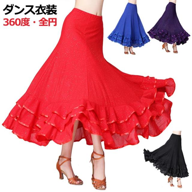 超ストレッチ ダンス スカート ダンス衣装 社交ダンス サーキュラースカート ダンス衣装 ロングスカート フレアスカート ロング フラメンコ衣装 ラテンダンス ヒップホップ ベリーダンス フリル レディース ミカドレス 送料無料